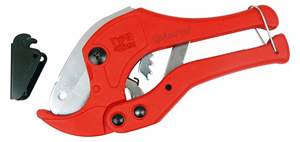 Heat treated cutting blade cuts PVC pipe and water hose up to 42mm diameter, cable duct and other flat plastic materials.