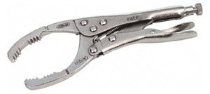 Non-slip, serrated jaws lock in position to remove stubborn oil filters.