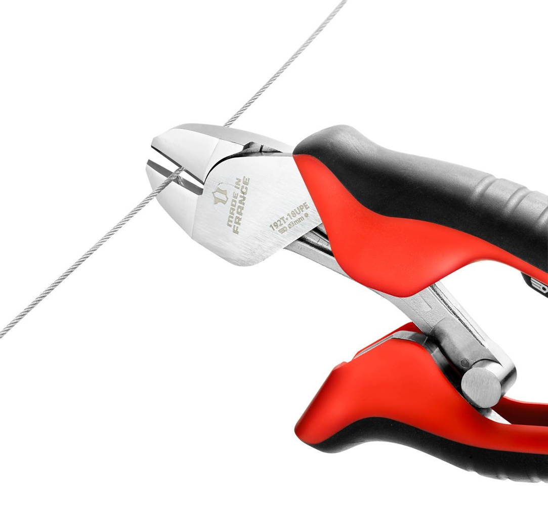 Thanks to this innovative new inverted form factor, the FACOM Ultra High Leverage plier delivers exceptional power with twice the leverage and efficiency of a standard 180mm diagonal cutting plier.