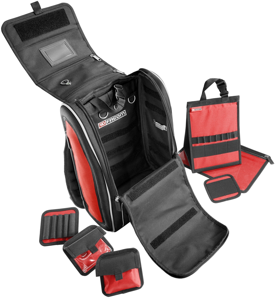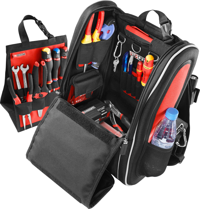 Interior layout: vertical storage for instant access to tools, elastic tool holding strap, side screwdriver rack.