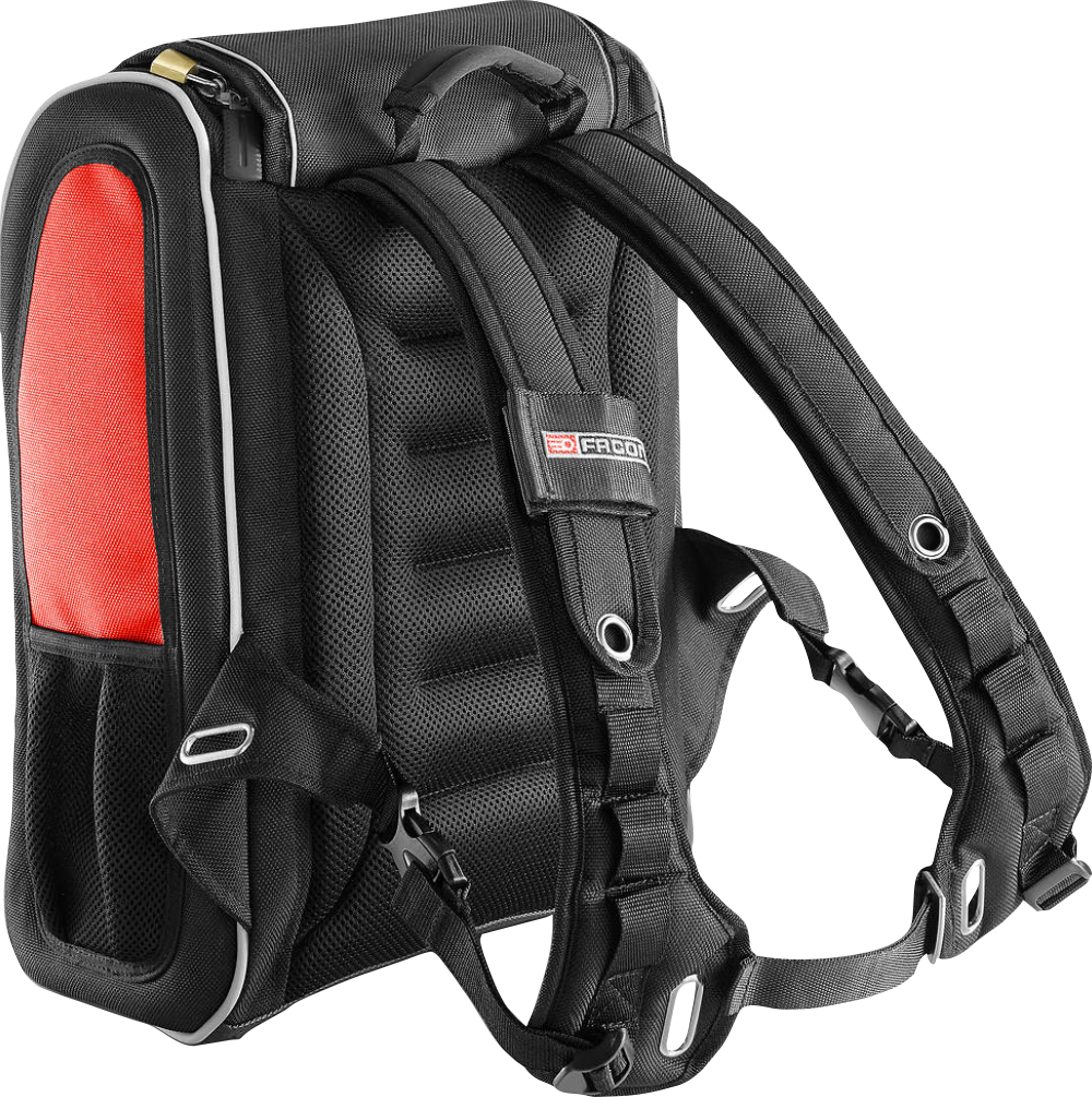 Exterior layout: 6 outside pockets, 1 special saw pocket adjustable by auto-adhesive strap, 1 large compartment to store documents (A4) or the protection cover.