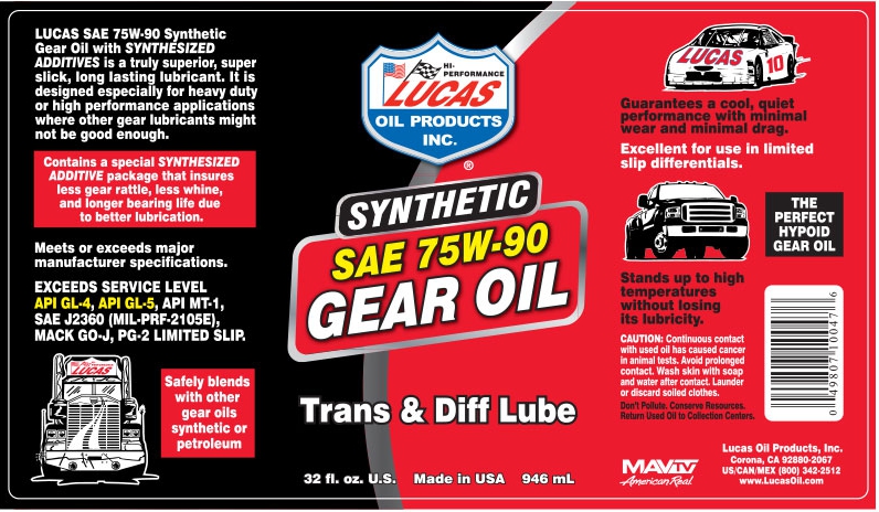 Lucas SAE 75W-90 Synthetic Gear Oil is a non-foaming, super slick, long lasting lubricant designed especially for heavy duty or high performance applications where other gear lubricants just aren't good enough.