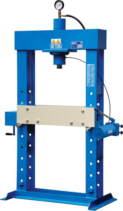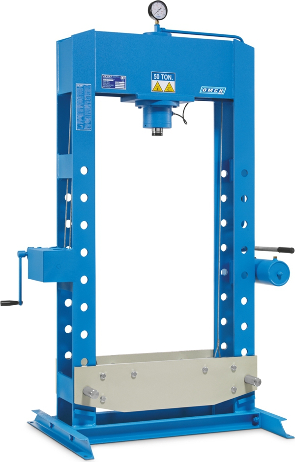 - The presses are fitted with a manometer and a two-approach-speed pump with the automatic return of the ram. By closing the two hand-wheels, one gets the rapid feed. By opening the upper hand-wheel one gets the high pressure.