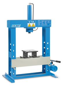 The presses are fitted with a manometer and a two-approach-speed pump with the automatic return of the ram. By closing the two hand-wheels, one gets the rapid feed. By opening the upper hand-wheel one gets the high pressure.
