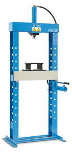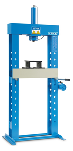 The presses are fitted with a two-approach-speed pump with the automatic return of the ram. By closing the two hand-wheels, one gets the rapid feed. By opening the upper hand-wheel, one gets the high pressure.