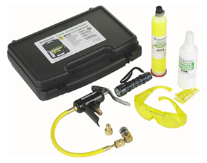 UV leak detection finds auto leaks quickly without mess, measuring, or calculations. Ultraviolet dye is injected and circulated throughout the A/C system refrigerant, then seeps out at the point of a leak. With the high-power UV lamp, the leak will glow brightly and be spotted easily.