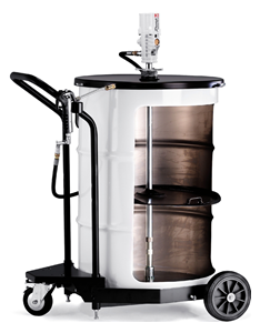 Assembly for high pressure greasing with a PumpMaster 3 - 55:1 pressure ratio pump for 185 Kg drums.