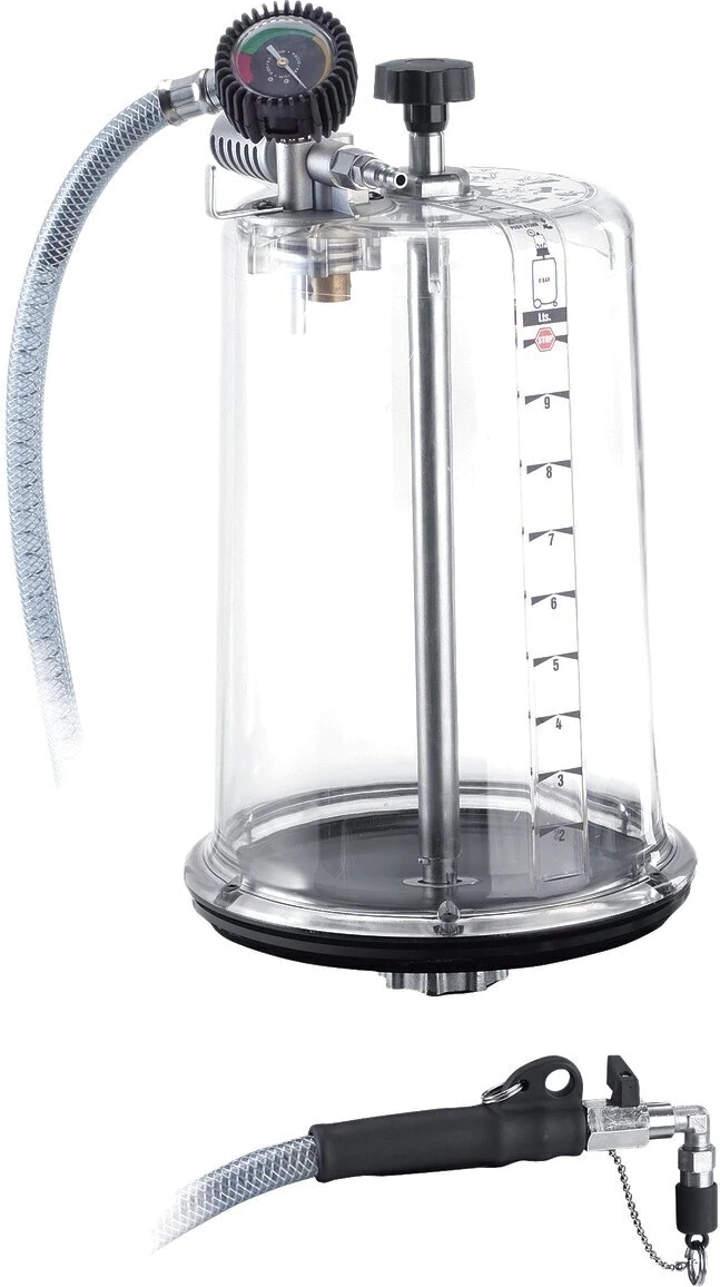 - Complete unit with air operated vacuum pump with vacuum gauge, 2 m suction hose with rubber grip, shut-off valve and connector for Mercedes vehicles.