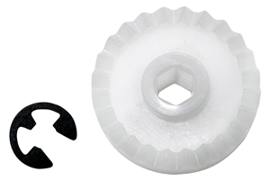 Designed as a mechanical fuse, this gear will fail before major damage is done to the lathe when something goes wrong such as selecting drum feed with a rotor mounted.