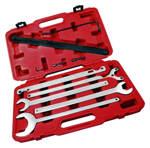 Contents: 3 fan clutch tools - 32, 36, 65mm, 3 fan clutch holders and fan belt service wrench