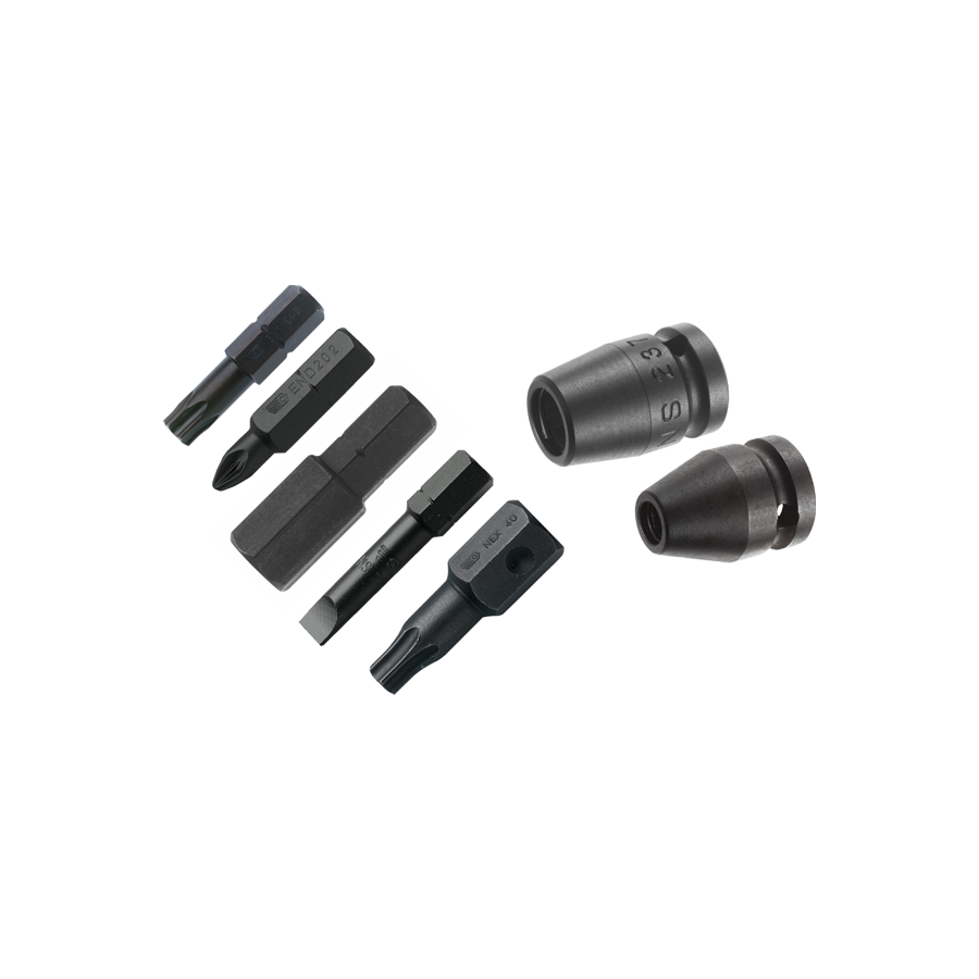 Hexagonal bits 6, 7, 8, 10, 12 and 14mm.