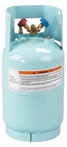 Refillable 30 pound refrigerant recovery tank for use with R-134a refrigerant (not included).