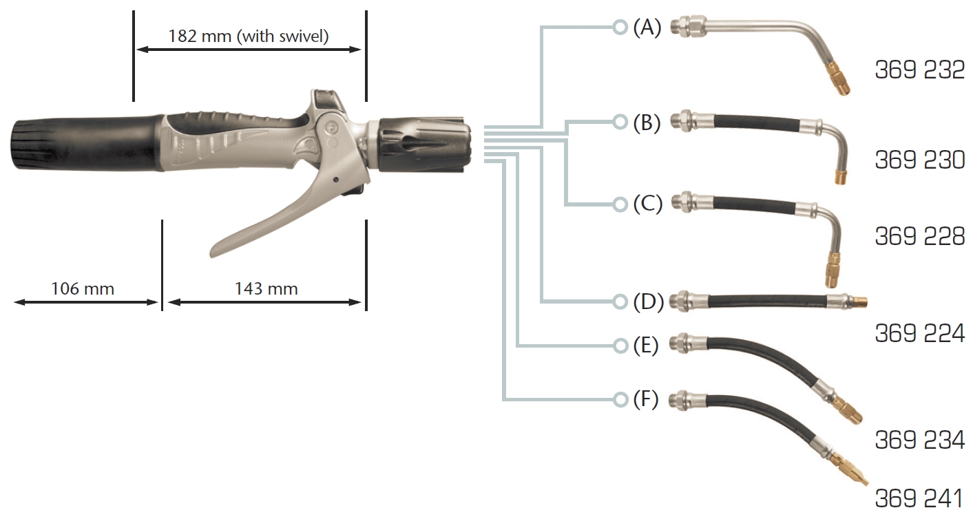 Aluminum body with light weight ergonomic design. Soft grip valve for comfort.