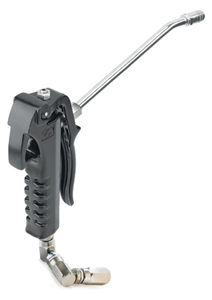 High pressure grease control guns with ergonomic body and trigger designed to reduce operator hand fatigue.
