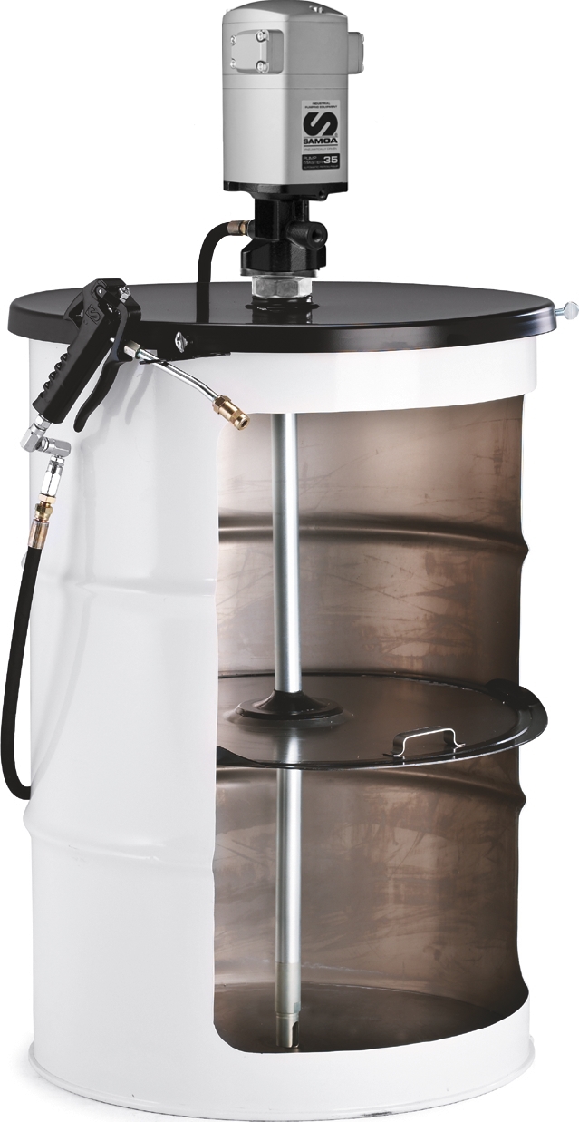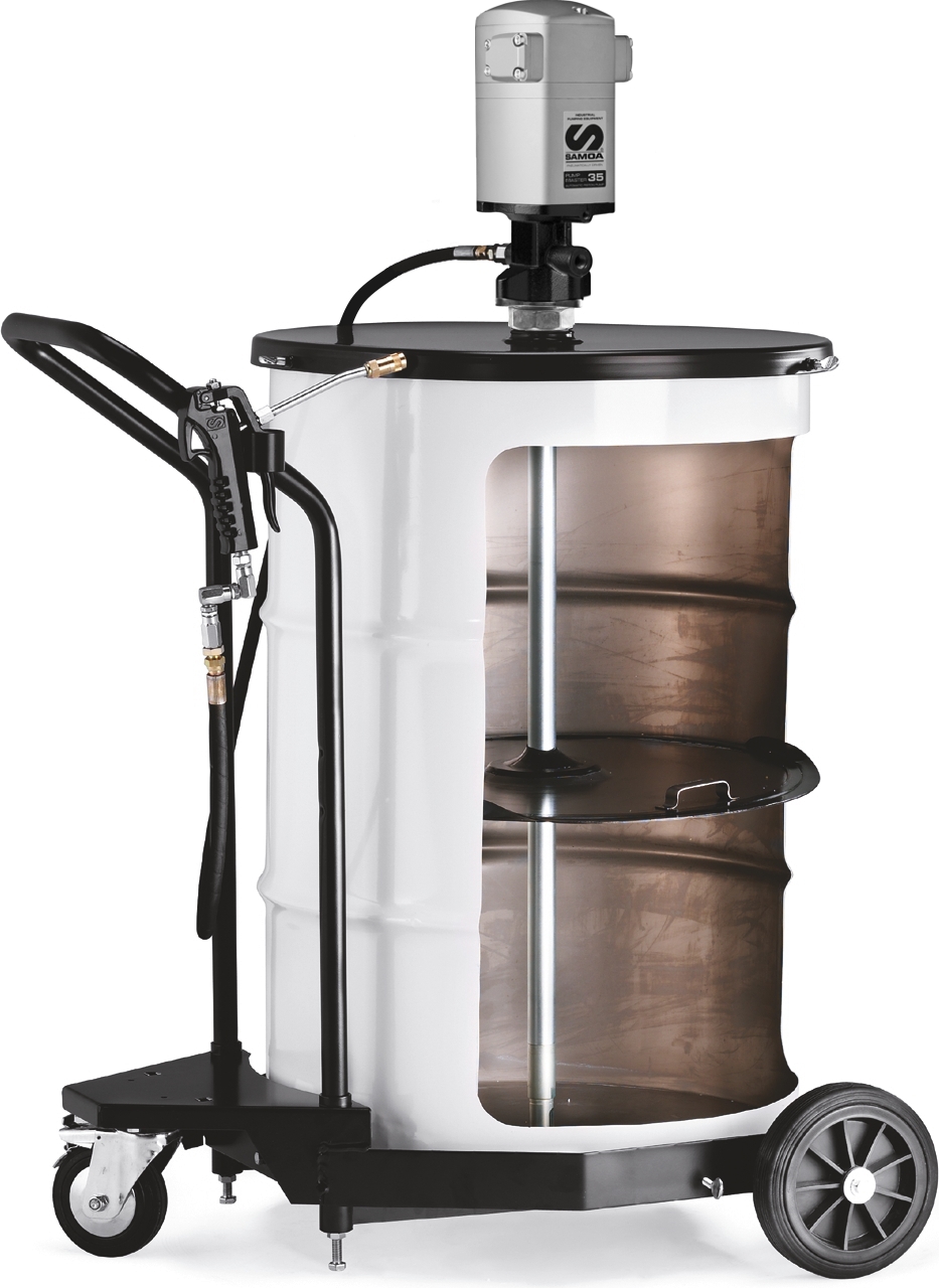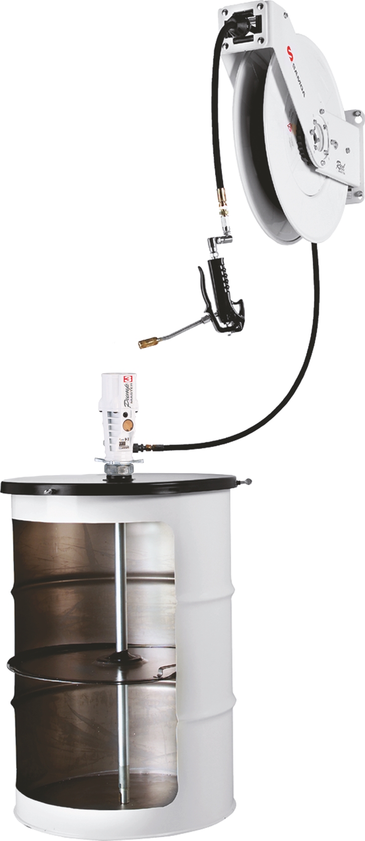 - Assembly for high pressure greasing with a PumpMaster 3 - 55:1 pressure ratio pump for 185 Kg drums.