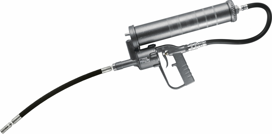 - Includes air bleeder valve and 2 m high pressure grease hose with a four jaw hydraulic connector with check valve.