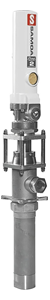 Double acting air operated low pressure pump with corrosion protected wetted parts.